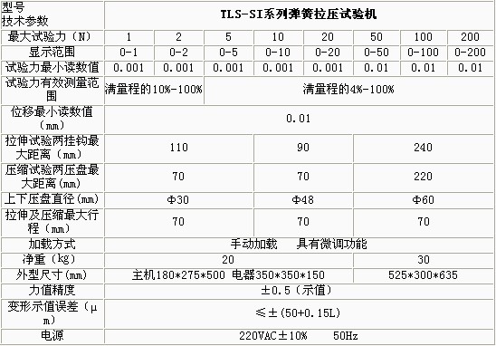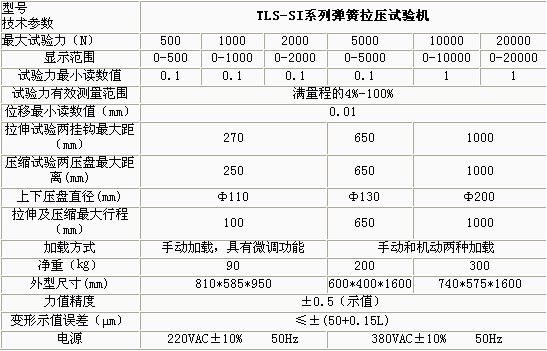 產(chǎn)品概述: TLS-SI系列雙數(shù)顯示拉壓彈簧試驗機采用集成電路、微機技術對位移、試驗力兩參數(shù)進行電子檢測、數(shù)字顯示并對試驗結(jié)果進行打印。施加試驗力為手動,還可以對負荷傳感器位移作自動修正。,適用于各種精密拉伸和壓縮螺旋彈簧試驗機及對脆性材料的強度測 功能特點: 數(shù)字顯示位移、負荷,微機控制彈簧拉壓試驗機,精確直觀并對試驗結(jié)果進行打印 采用ISP技術編程,青島彈簧試驗機廠家,對負荷傳感器的變形自動修正 試驗力、位移任意點清零,彈簧扭力試驗機,可任意設定檢測基準 具有峰值保持、過載保護等功能 技術參數(shù):
